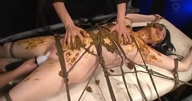 Cute lady shits on a beautiful bounded girl while strangers stimulate her to orgasm