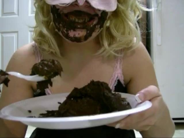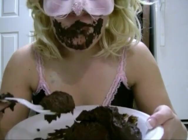 Blonde Masked Woman Eating Her Poop in a Plate