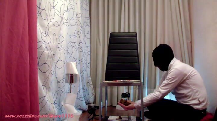Lucky slave eating his mistress shit as breakfast