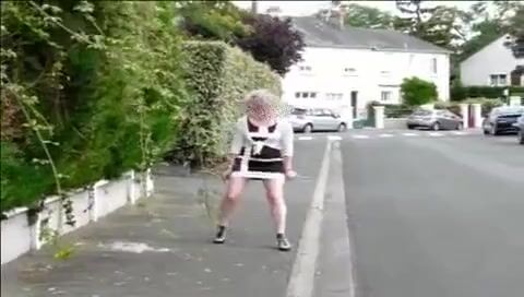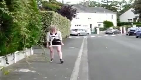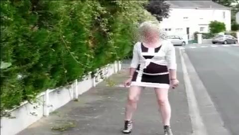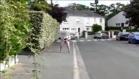 Mature woman shitting on the street