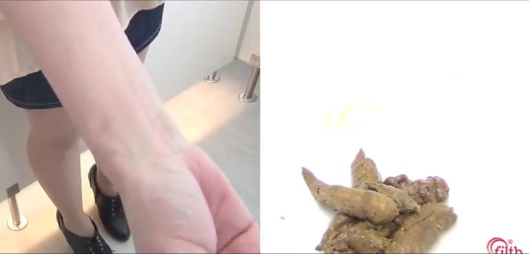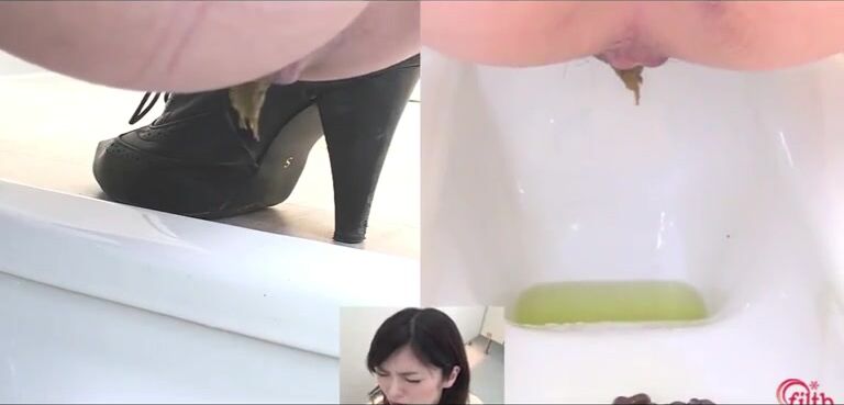 Girl open wide legs and shitting on the toilet floor