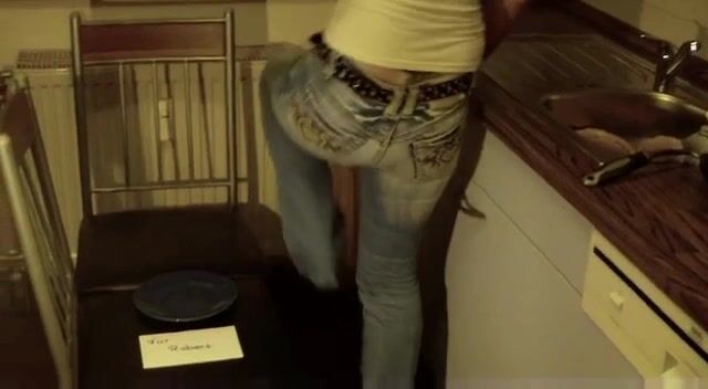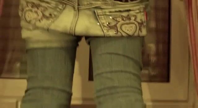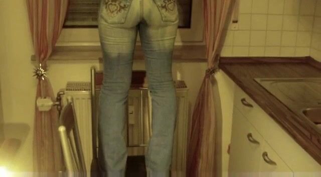 Girl in tight jeans poops