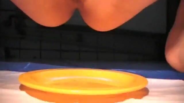 Hot thin babe shits on her floor