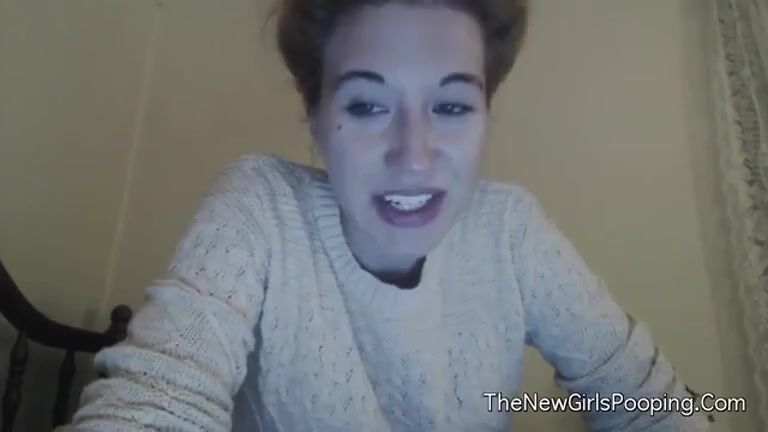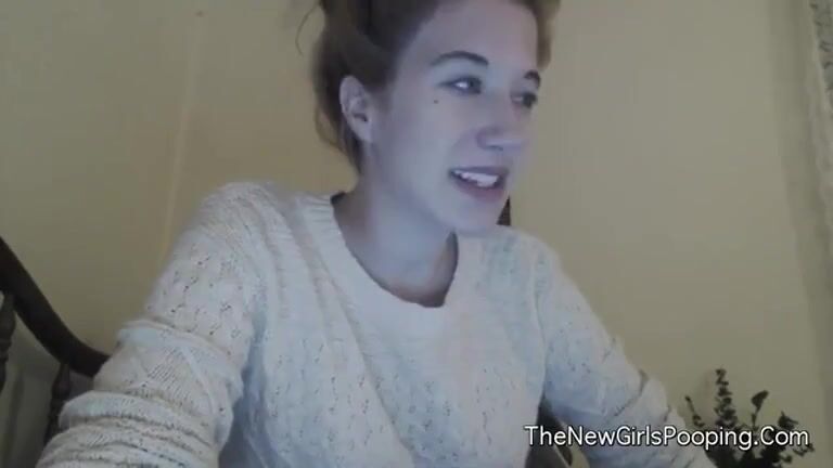 Cute teen girl sits on the toilet in front of the camera. She starts poopin
