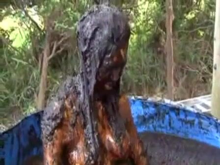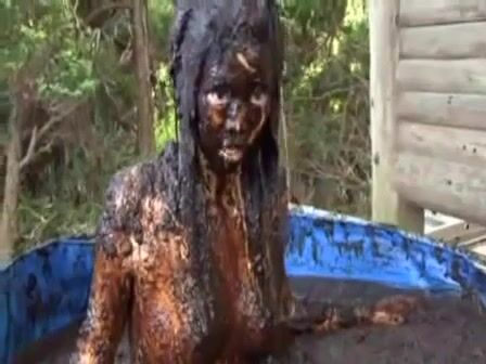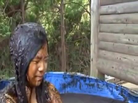 Brunette hottie taking a scat bath