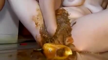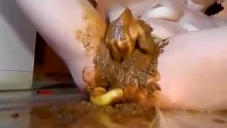 Frau fickt ihre vollgekackte Fotze mit Banane