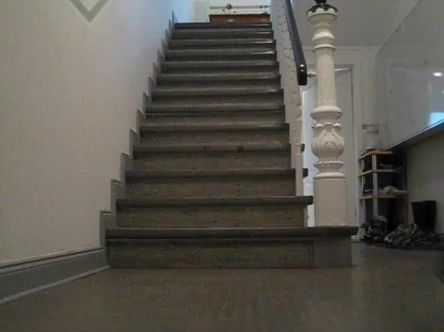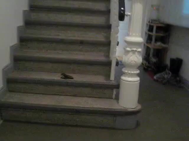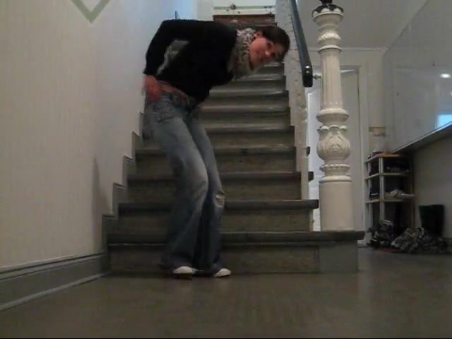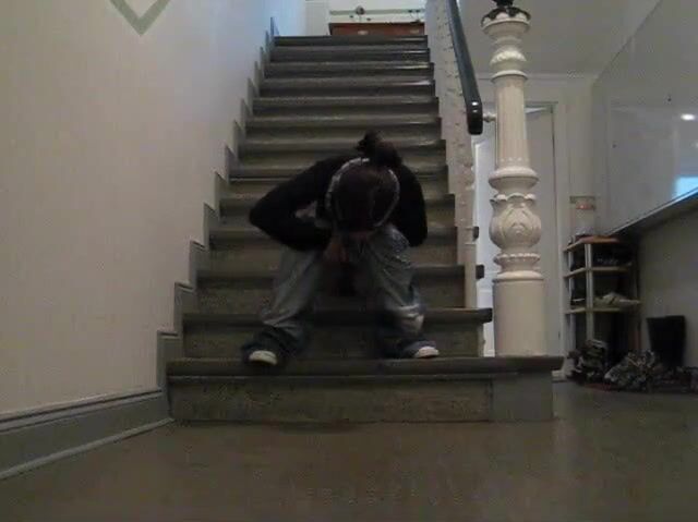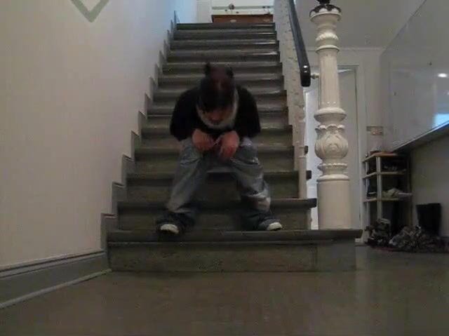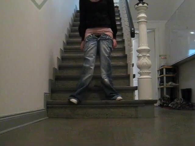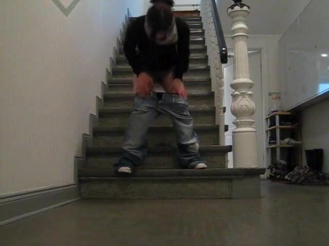 Junge Frau kackt ins Treppenhaus
