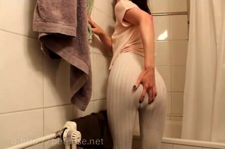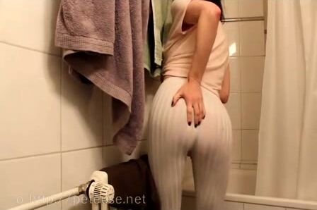 wetting and pooping big log in tight pants