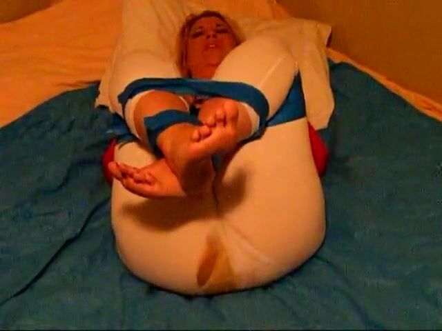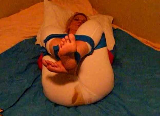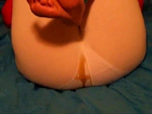 blonde woman releases shitty enema in pantyhose