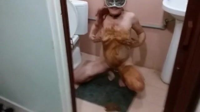 Schön mit Scheiße eingeschmiert - die kleinen Titten, die Muschi...