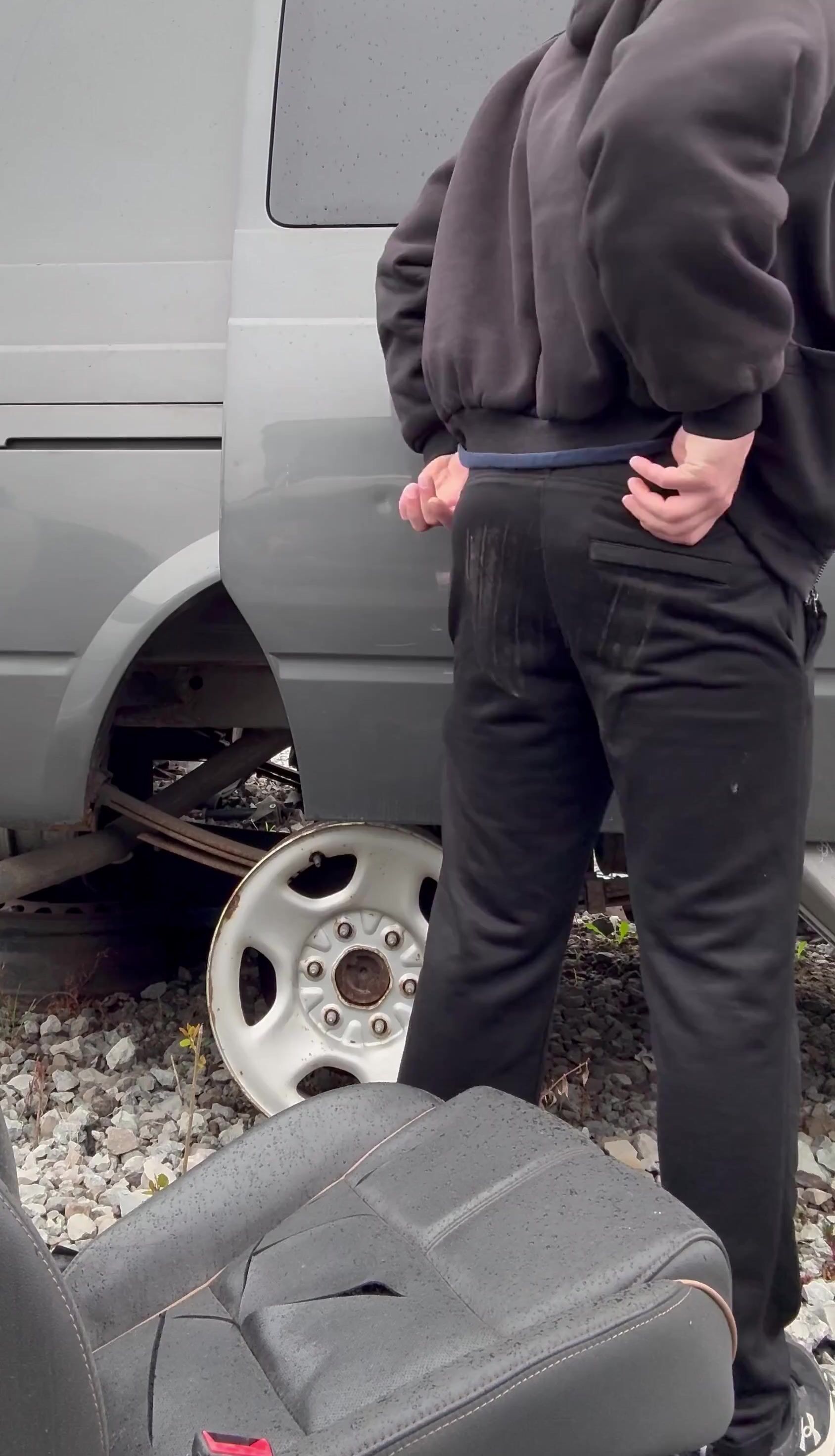 Canadian Guy Takes a Massive Turd and a Piss in the Junkyard